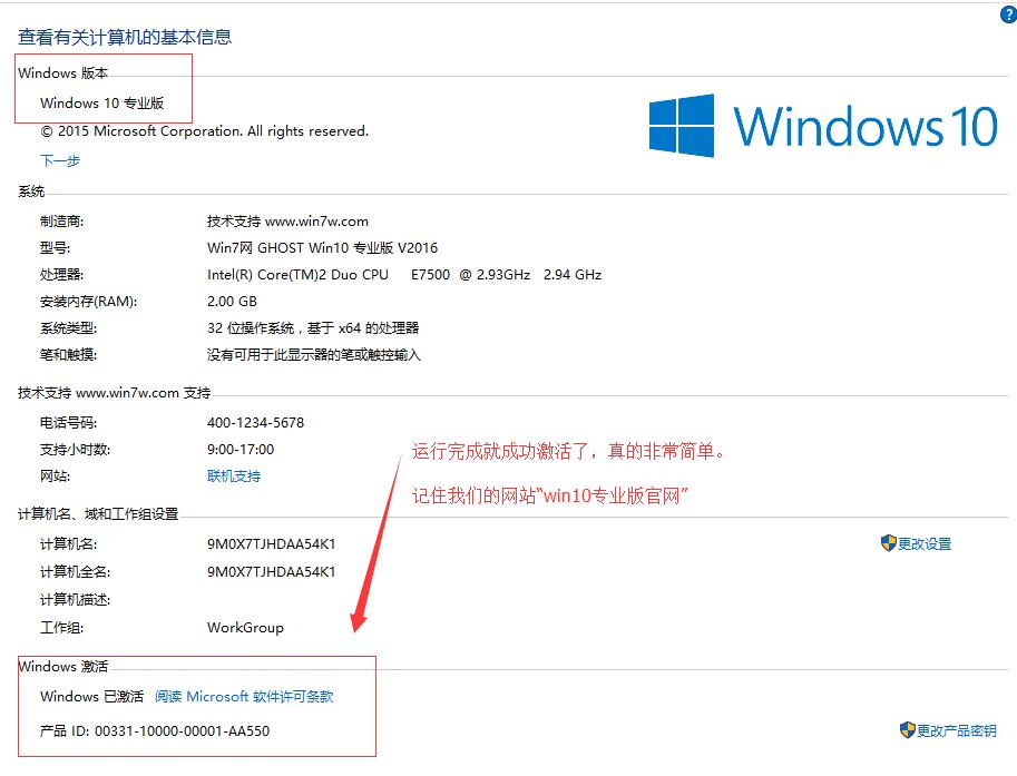 这里我们win10专业版激活就完成了,下面我们看看激活后的激活信息。
