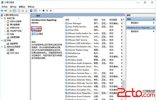 12、再找到 Windows Error Reporting Service,单击后同样在左侧点击“停止此服务”