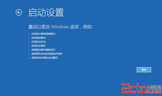 8、这里给出了下次重启后的主要选项,点击“重启”按钮进行