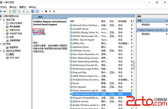 11、在“计算机管理”左边栏找到“服务和应用程序”并展开,点击“服务”,然后在中间找到 Problem Reports and Solutions Control Panel Support 服务,单击后在左侧点击“停止此服务”