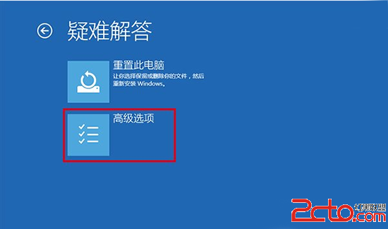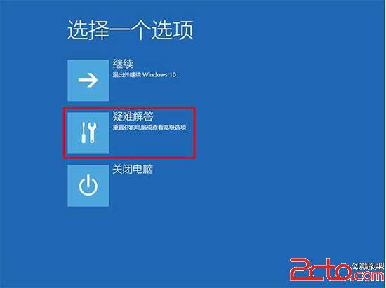 5、重启后,进入第一个选择画面,点击“疑难解答”