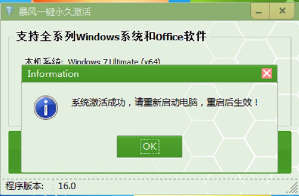 2.暴风激活工具一键永久激活win7系统,win8系统,win8.1系统,win10系统和各系列的Office软件的激活问题,轻松一键就可以实现永久完美离线激活,完全超越其他任何激活工具。