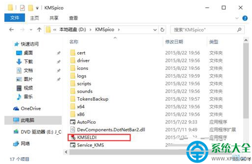 4、进入安装目录,我在这里进入的是D:\KMSpico目录,双击名为KMSELDL的红色小图标。