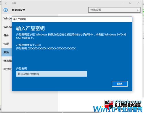 第三步,点击设置,选择激活一栏,点击更改产品密钥,输入第一个密钥PW48G-MNG8W-B9978-YWBRP-76DGY,点击下一步,显示未激活后关闭。