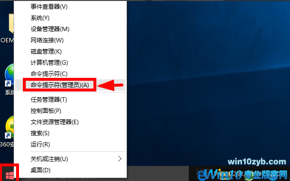 3、现在我们在开始菜单上点击右键,然后选择命令提示符【管理员】点击打开。