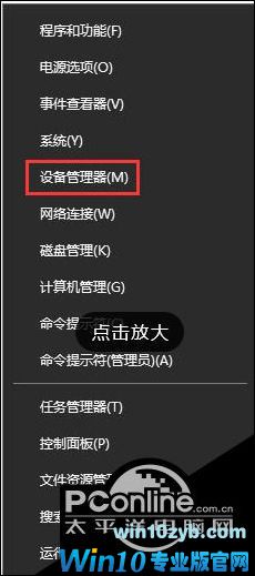 1、首先在开始菜单单击鼠标右键,在弹出的菜单中点击【设备管理器】