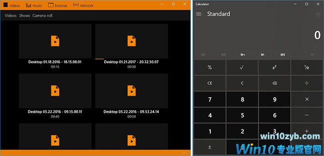 下面的屏幕截图显示了VLC的通用Windows平台变体和股票计算器应用程序,默认应用程序模式设置为Dark。