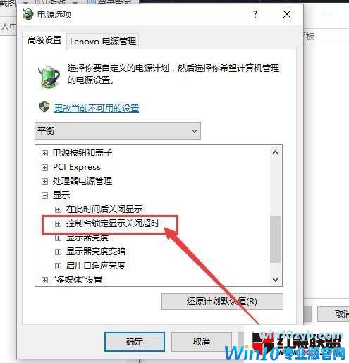 在电源高级管理项目中,我们点击其中的“显示”设置,然后在子项中找到“控制台锁定显示关闭超时”,点击之后即可进入设置页面。
