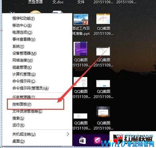 接下来,我们继续在桌面上按下Windows徽标键+X键,打开Win10超级菜单,在Win10超级菜单中选择“控制面板”,打开控制面板设置页面。