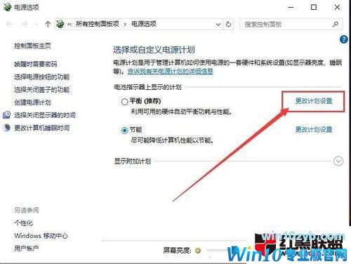 打开控制面板设置页面之后,我们在控制面板中找到“电源选项”设置子项,单击打开电源选项设置页面。在电源设置页面中,点击“更改计划设置”选项。