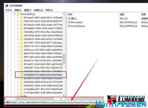 打开注册表编辑器之后,我们点击左侧注册表文件信息,依次双击打开左侧文件,将其定位到HKEY_LOCAL_MACHINE\SYSTEM\CurrentControlSet\Control\Power\PowerSettings\7516b95f-f776-4464-8c53-06167f40cc99\子项。