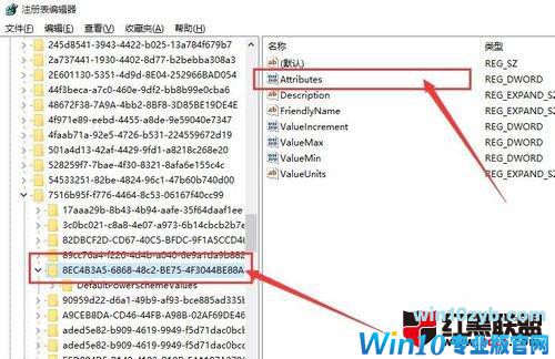 在7516b95f-f776-4464-8c53-06167f40cc99子项下,我们继续双击打开8EC4B3A5-6868-48c2-BE75-4F3044BE88A7子项,然后在其右侧页面中找到Attributes一项,双击打开该项目。