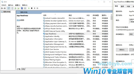 用小娜搜索“服务”,找到 “App Readiness”,右键点击“停止”,然后双击,将启动类型设置为“停止”,再确定。