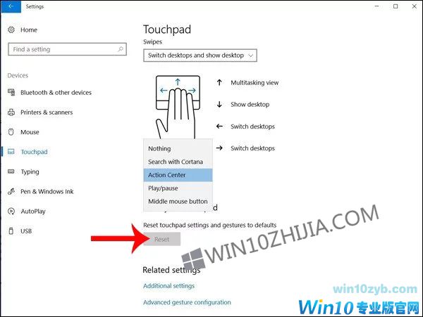 步骤6:设置3个手指后,您将继续调整4个手指的操作。 如果您想要返回到以前的设置,只需点击重置按钮。