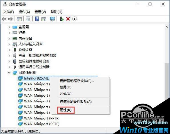 也可以在开始菜单上单击右键,选择 -- 设备管理器 --- 网络适配器 ,在网卡上单击右键,选择属性,打开网卡属性;