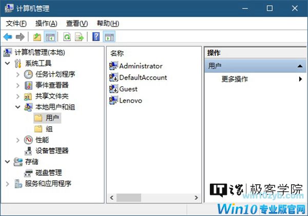 在窗口左侧的树状列表中展开本地用户和组,点击用户文件夹。