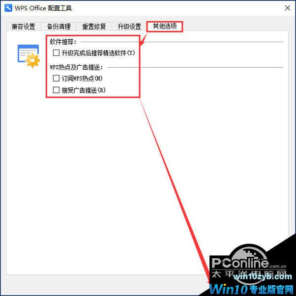 3、打开之后选择“其他选项”——取消前面的“订阅WPS热点”、“接受广告推送”,然后点击【确定】搞定,如下图: