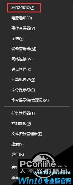 2、Win+x打开超级菜单,点击【程序和功能】。