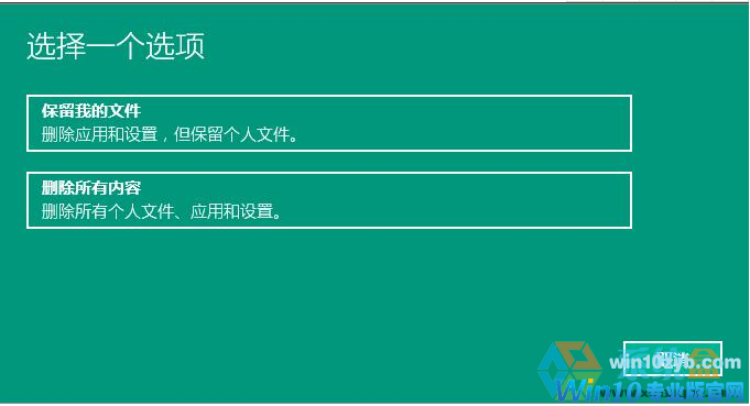 3.在打开的Windows 10重置功能界面按自己的需求选择重置项即可。