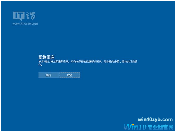 2、之后按着Ctrl键,再去点击右下角的电源按钮,就会进入到紧急重启的提示界面。如下图: