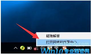 首先在Win10笔记本无线图标上右键,在弹出的右键菜单中,点击进入“打开网络和共享中心”