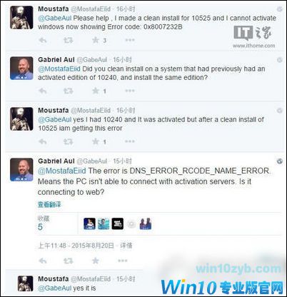 win10预览版10525错误0x8007232B怎么办?有一位用户就在Twitter上向微软副总裁Gabriel Aul反映在激活过程中遇到0x8007232B错误。