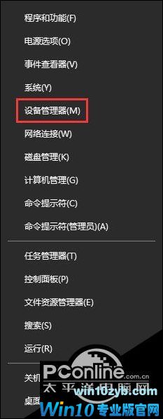 1、在开始菜单上单击右键,选择【设备管理器】;