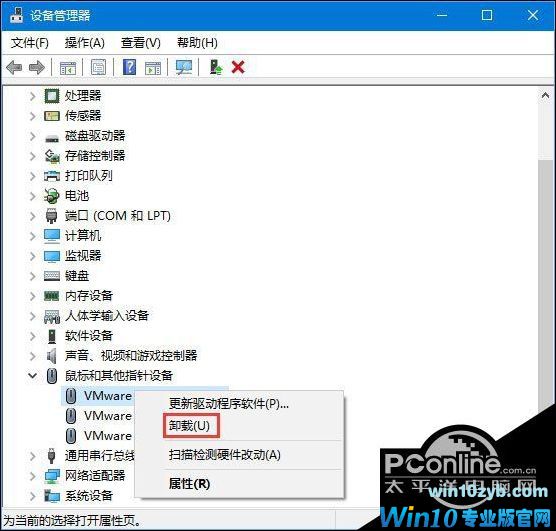 2、打开设备管理器,找到鼠标驱动将其右击【卸载】;