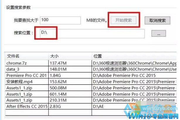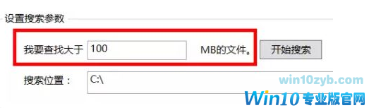 3、设置要查找的文件大小,在“我要查找大于 MB”中填写自己想要的数值,如下图,小编设置了大于100M的文件