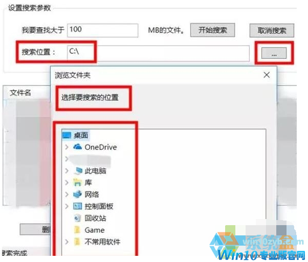 4、然后设置搜索位置,点击右侧“…”可以选择搜索位置。某个磁盘或者某个具体的文件夹都可以,如下图进行选择;