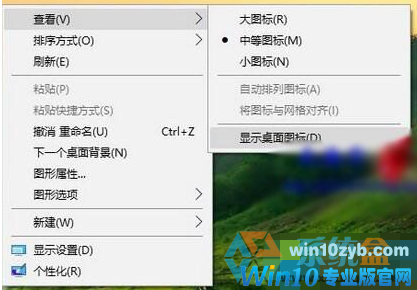 第一步、对着桌面空白处单击鼠标右键,在菜单中鼠标指向“查看”,然后点击菜单中的“显示桌面图标”。