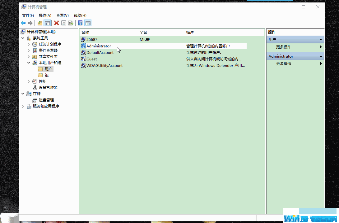 右键"计算机"或"我的电脑"-》选择"管理"-》"本地用户和组"-》"用户"-》"Administrator"
