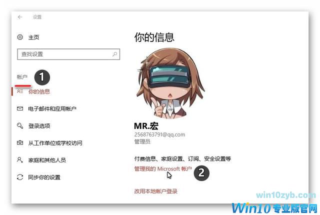 1. 建议微软账户登录,如果要改你的账户名,下图中第2步: