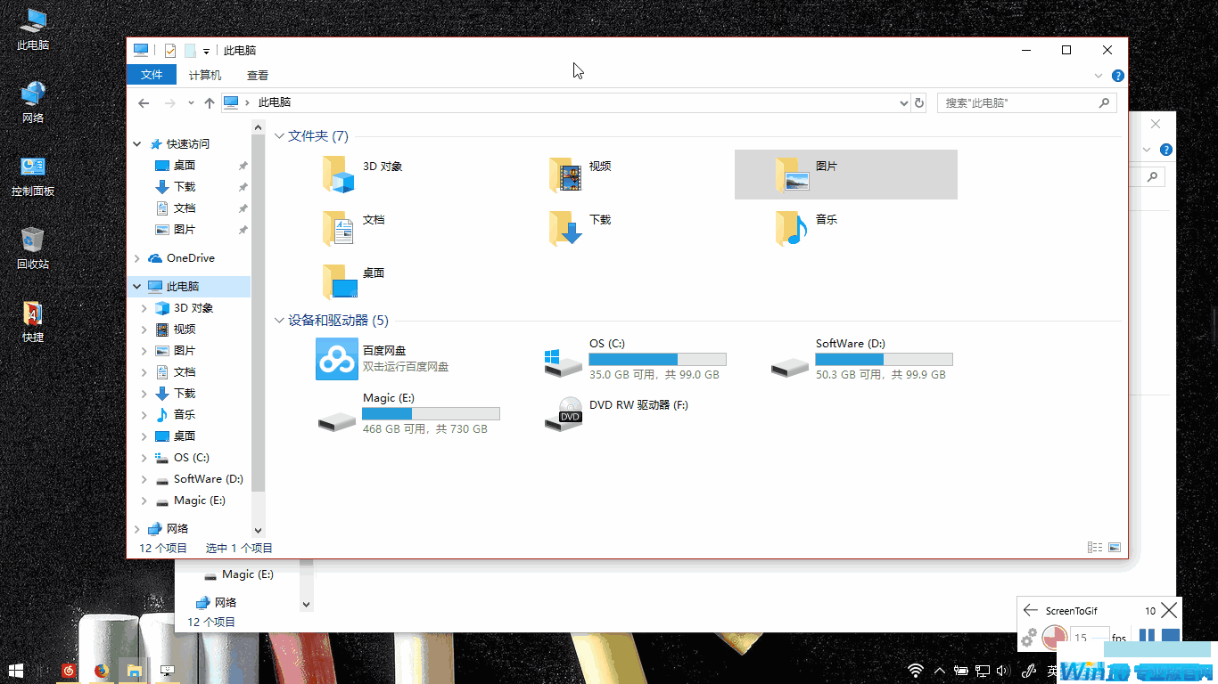 Win+E 打开文件管理器;
