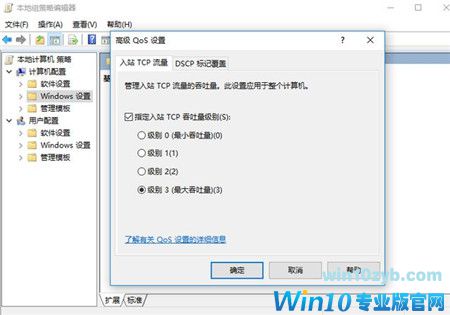 在图标记位置点击鼠标右键,选择“高级QoS设置,在入站TCP流量选项中,勾选:指定入站TCP吞吐量级别,选择下面级别3,勾选上即可。