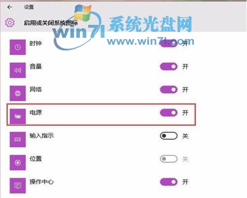 3、接下来,我们可以在打开图标页面中,再尝试打开电脑中的电池显示图标,如果可以点击开启该图标的话,点击开启即可。如果页面显示如下所示,电池开启图标处于关闭状态,最后再进入设备管理器即可。