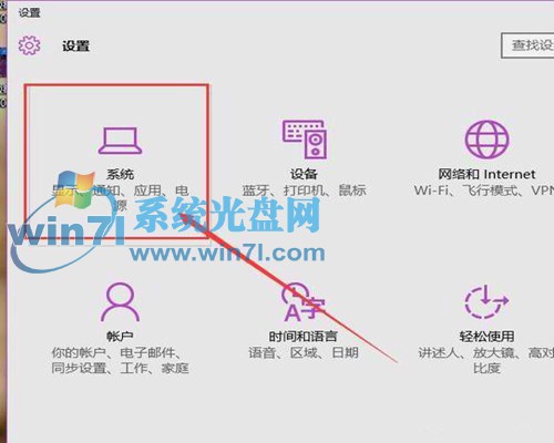 1、首先,我们可以尝试调节一下系统设置看看能否使电池图标正常显示出来。点击系统中的开始菜单,在弹出的开始菜单中点击选择“设置”应用。在设置应用中点击设置界面中的“系统”功能选项,打开系统功能设置页面。