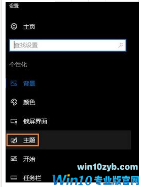 2、自动跳转到Win10系统的“设置-背景”对话框,这里我们稍作调整,切换到第四行的“主题”,如图所示: