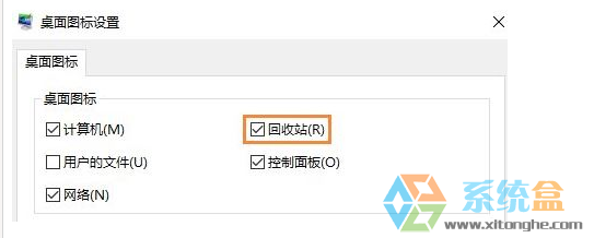 4、在弹出的桌面图标设置中勾选【回收站】选项,然后点击“确定”即可!
