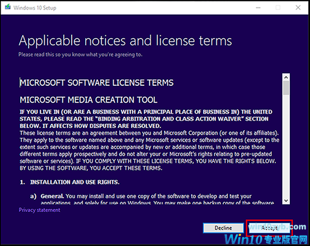 转到以下链接,开始创建安装介质的过程:Windows 10介质创建工具