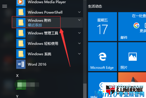 点击打开Windows附件,然后找到“截图工具”并点击。