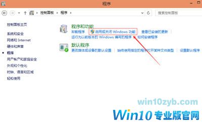 3、在程序窗口里点击启用或关闭Windows功能。如下图所示。