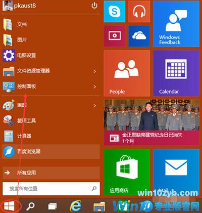 1、点击Win系统的菜单按钮,再点击弹出菜单里的控制面板,如下图所示。
