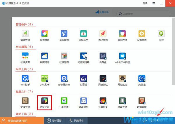 ▲在软媒魔方首页右下角点击“应用大全”,然后找到“虚拟光驱”