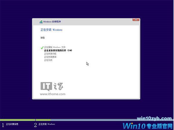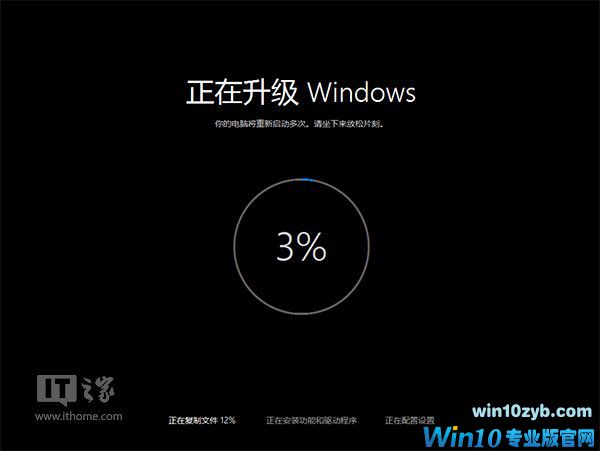 ▲系统重新评估安装条件后,会再次打开“准备就绪”页面,此时点击“安装”即可出现上图的安装进行中界面。如果你选择保留所有内容升级,这将可能是一个比较耗时的过程,大约需要1小时以上,其间电脑会自动重启两次以上