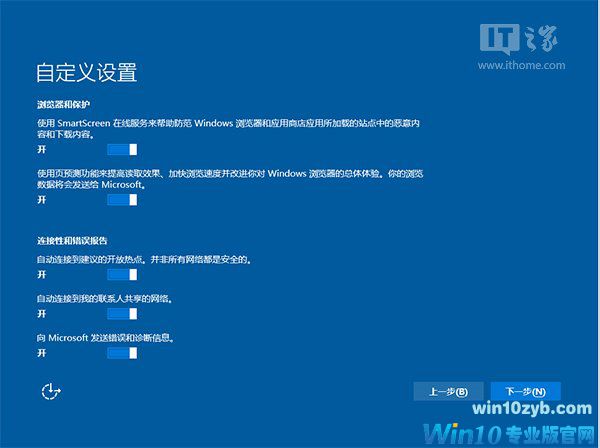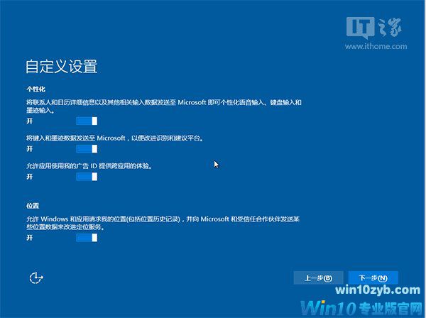 ▲你可以在上述选项中选择可向微软发送的数据信息。但要注意,如果关闭“位置”信息,则当前设备无法定位(平板电脑等移动设备慎用)。点击“下一步”后完成这部分设置。