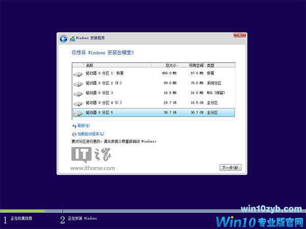 ▲选择(除了当前系统分区和“系统保留”分区之外的)其他分区,至少16GB剩余空间,然后点“下一步”。