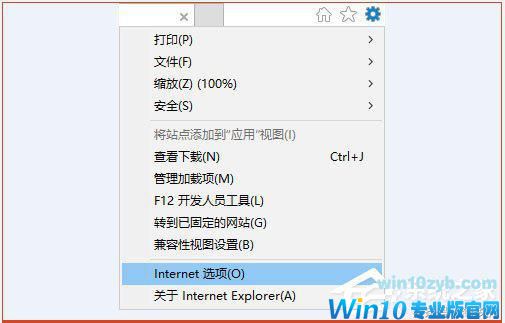 3、启动IE浏览器,在浏览器中,找到"设置"→"Internet选项"。有些IE的版本界面不一致,大致就是"齿轮"形状的设置按钮,或者为"设置"字样;