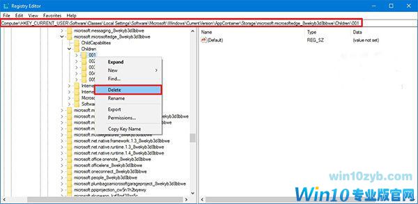 ComputerHKEY_CURRENT_USERSoftwareClassesLocal SettingsSoftwareMicrosoftWindowsCurrentVersionAppContainerStoragemicrosoft.microsoftedge_8wekyb3d8bbweChildren