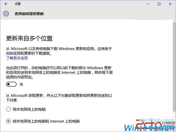 3、start项设置完成后,打开win10系统的设置界面,然后依次点击更新和安全>>Windows更新>>高级选项>>选择如何提供更新,在选择如何提供更新设置界面中有一个更新来自多个位置选项,我们将该选项关闭。